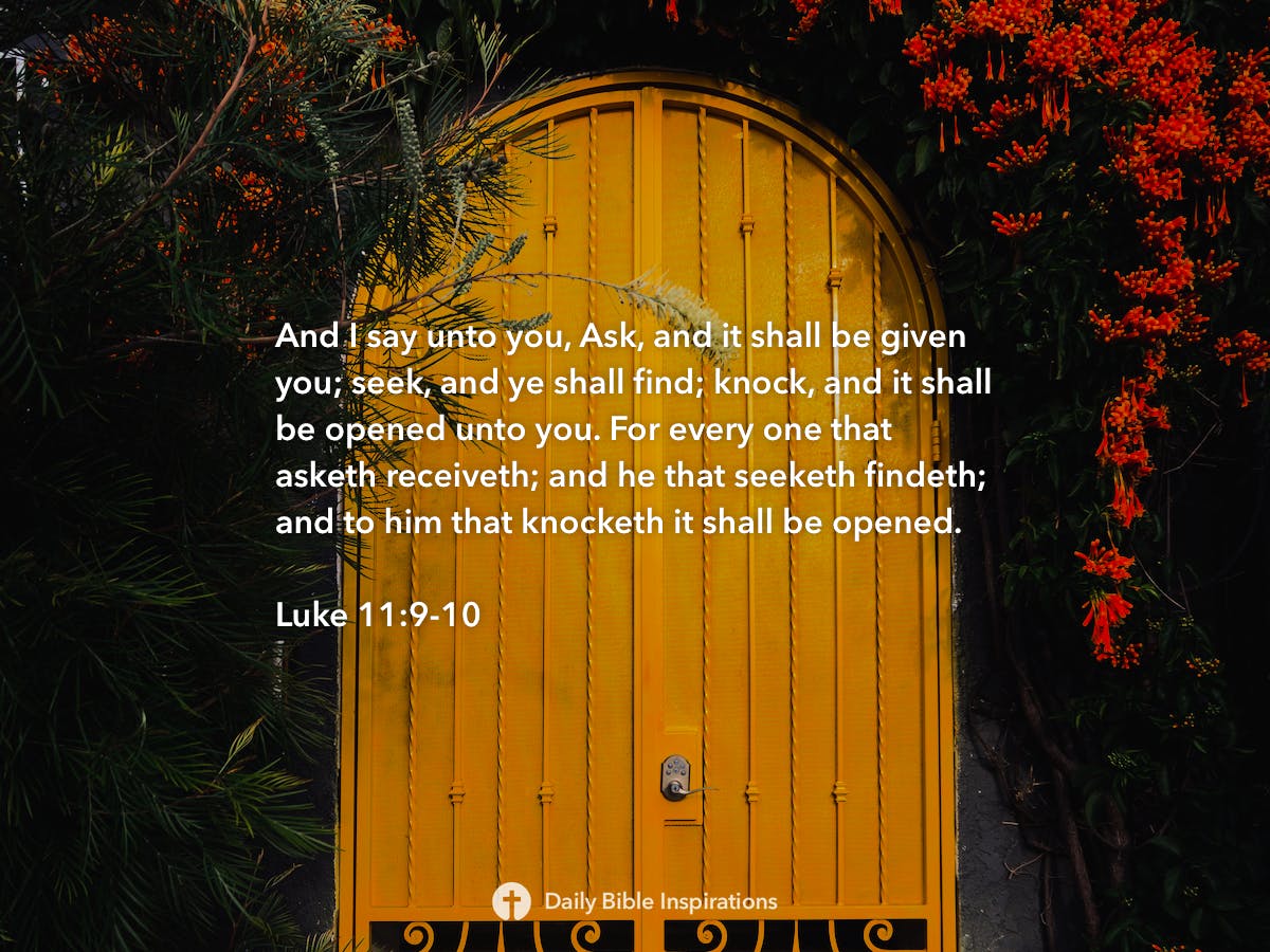 5 And he said to them, “Which of you who has a friend will go to him at midnight and say to him, ‘Friend, lend me three loaves, 6 for a friend of mine has arrived on a journey, and I have nothing to set before him’; 7 and he will answer from within, ‘Do not bother me; the door is now shut, and my children are with me in bed. I cannot get up and give you anything’? 8 I tell you, though he will not get up and give him anything because he is his friend, yet because of his impudence[c] he will rise and give him whatever he needs. 9 And I tell you, ask, and it will be given to you; seek, and you will find; knock, and it will be opened to you. 10 For everyone who asks receives, and the one who seeks finds, and to the one who knocks it will be opened. 11 What father among you, if his son asks for[d] a fish, will instead of a fish give him a serpent; 12 or if he asks for an egg, will give him a scorpion? 13 If you then, who are evil, know how to give good gifts to your children, how much more will the heavenly Father give the Holy Spirit to those who ask him!”